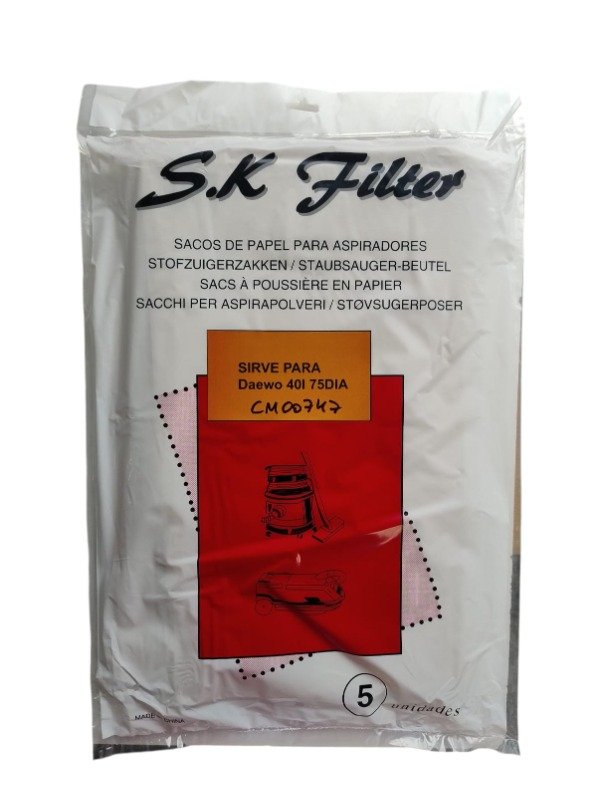 PACK 5 bolsas de aspiradora daewoo 40 litros, boca 60mm